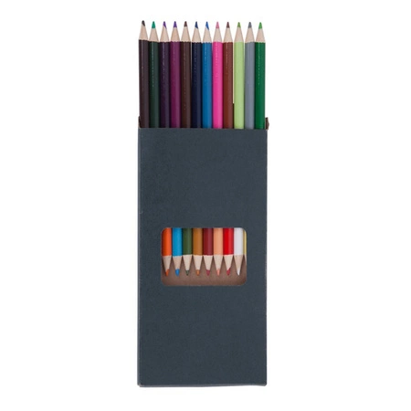 Zestaw składający się z 12 dwukolorowych kredek, (średnica wkładu/grafitu 2,65 mm, drewno lipowe). W kartonowym pudełku.
