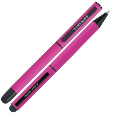 - Zestaw piśmienniczy w modnych, intensywnych kolorach, składający się z długopisu oraz pióra kulkowego. Obydwa artykuły posiadają przyjemną w dotyku powierzchnię soft touch i czarne detale oraz funkcję touch pen. Długopis wyposażony w niebieski wkład (0,7