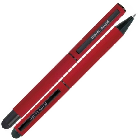 - Zestaw piśmienniczy w modnych, intensywnych kolorach, składający się z długopisu oraz pióra kulkowego. Obydwa artykuły posiadają przyjemną w dotyku powierzchnię soft touch i czarne detale oraz funkcję touch pen. Długopis wyposażony w niebieski wkład (0,7