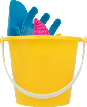- Zestaw zabawek do piaskownicy. Zestaw zawiera: wiaderko, łopatkę, grabki, 2 foremki. Nie nadaje się dla dzieci poniżej 3 roku życia.