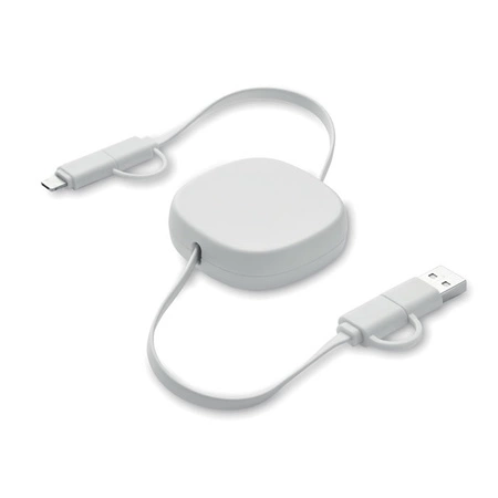 - Zwijany kabel o mocy 60W w obudowie ABS z recyklingu. Wejście: 2-w-1 Typ-C i Typ-A. Wyjście: Typ-C i micro-B (2 w 1 pin). Długość kabla: 80 cm.